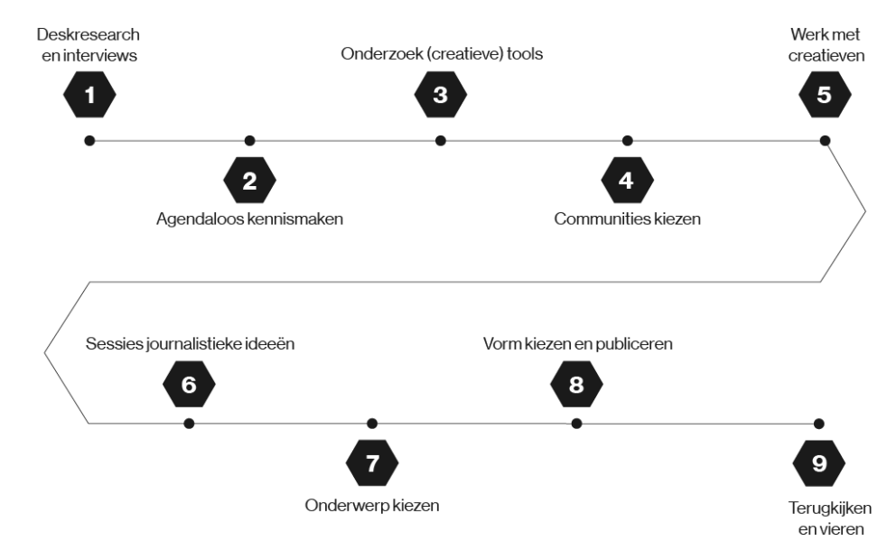 Co-creatie is persoonlijk: afhankelijk van de community en van de journalist en elke keer anders. Door onze experimenten in alle openheid te delen willen we zorgen we dat niemand bij nul begint. Wat resoneert in jouw samenstelling? Welk verhaal verraste of raakte je? Welke tools vinden jullie bruikbaar? Welke ingrediënten passen bij jou en je achterban?