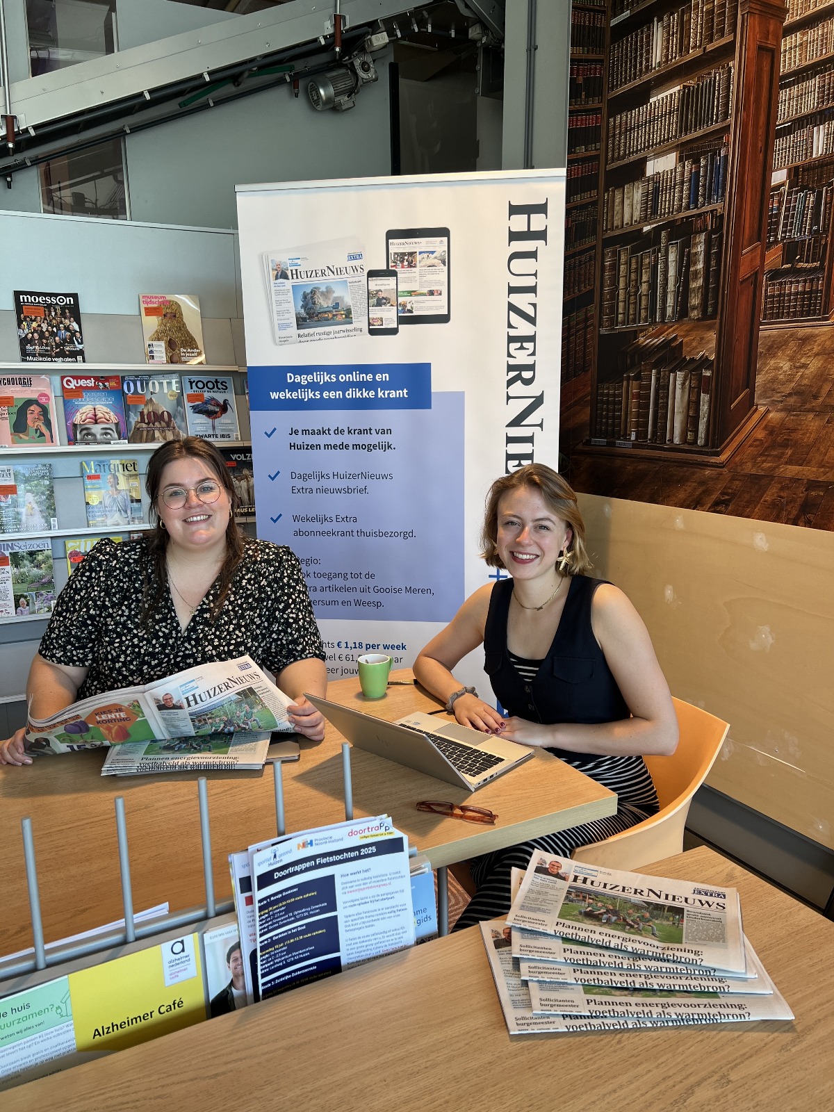 Elke eerste donderdag van de maand zitten ze er weer: Marinka Hilders en Sanne Bakker van het HuizerNieuws, aan een tafel vlak bij de ingang van de lokale bieb in Huizen. Klaar om in gesprek te gaan met lezers. En, zo stellen ze na een klein jaar experimenteren tevreden vast, ze komen tijd te kort. ‘Eigenlijk zijn we in die twee uur constant aan het praten,’ zegt Bakker.